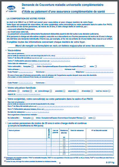 Déposez votre demande de CSS en ligne sur votre compte AMELI ou directement auprès de votre CPAM en complétant le formulaire S3711. N’hésitez pas à voir avec votre médecin généraliste ou avec un conseiller Ameli si la démarche vous semble compliquée.